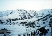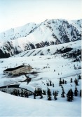 立山カルデラ展望台より 弥陀ヶ原ホテルが見える |